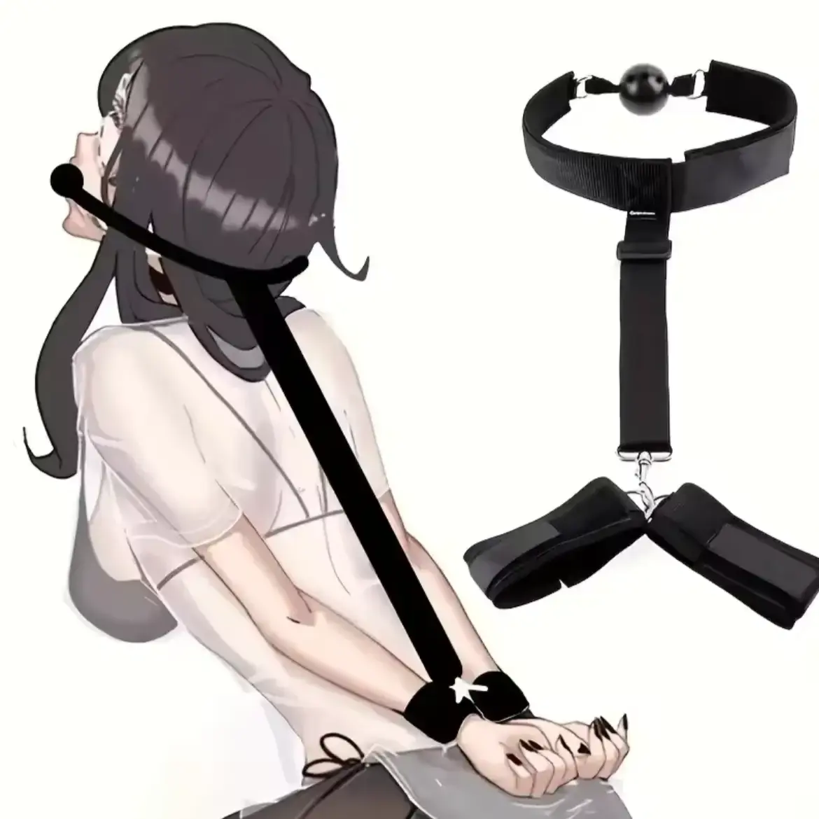 Цікавий набір для фіксації BDSM Кляп з пластиковою кулею та наручниками створений спеціально для тих, хто любить різноманітність. Регульований кляп досить простий у використанні - достатньо лише надіти його та застебнути наручники, завівши руки партнера за спину. Міцний та комфортний матеріал не завдає дискомфорту, але надійно фіксує, не залишаючи жодного шансу вирватися із солодкого полону. Комплект виготовлений з міцного нейлону, представляє собою кляп з пластиковою кулькою з'єднаних з нейлоновими наручниками на липучках. Комплект буде незамінним для рольових ігор, БДСМ сесій, тематичних фотосесій.